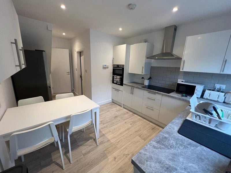 The available room is spacious and modern, with an ensuite bathroom for added privacy and convenience. The room also features a balcony, allowing for natural light and fresh air to flow in. The flat includes a fully equipped large kitchen, perfect for cooking and socializing with flatmates. There is a dining area for shared meals and gatherings, as well as ample storage space for belongings. The atmosphere of the flat is welcoming and comfortable, designed for residents to feel at home and relaxed.