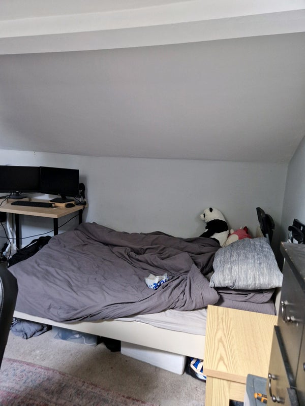 The attic room available in this shared house offers a cozy and comfortable living space. While the room is unfurnished, it presents an opportunity for residents to create a personalized oasis. The shared kitchen/living room provides a communal space for socializing and relaxation. The overall atmosphere of the flat is welcoming and conducive to a harmonious living environment. Practicality and comfort are key aspects of the living space, ensuring residents feel at home.