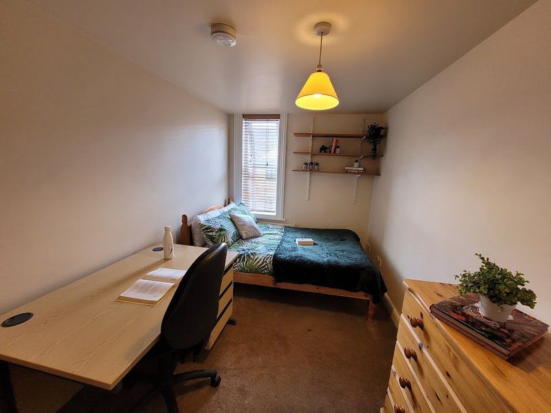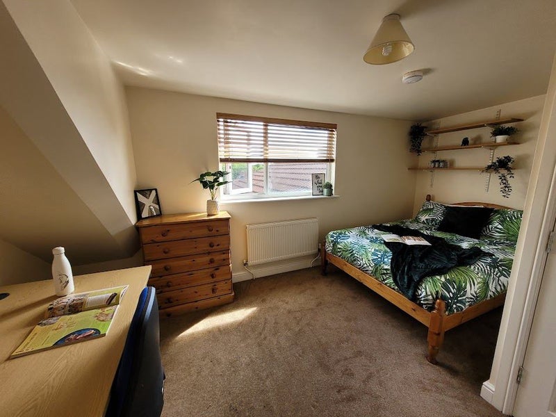 The bedrooms in this house share are designed for comfort and practicality, featuring all the necessary furnishings for a cozy living experience. The shared living room with a flat screen TV provides a space for relaxation and entertainment. The overall atmosphere of the flat is welcoming and conducive to both social interactions and personal downtime. Residents can enjoy the spacious bedrooms for studying or unwinding after a long day. The open-plan kitchen diner offers a communal area for cooking and dining together, enhancing the sense of community within the house.