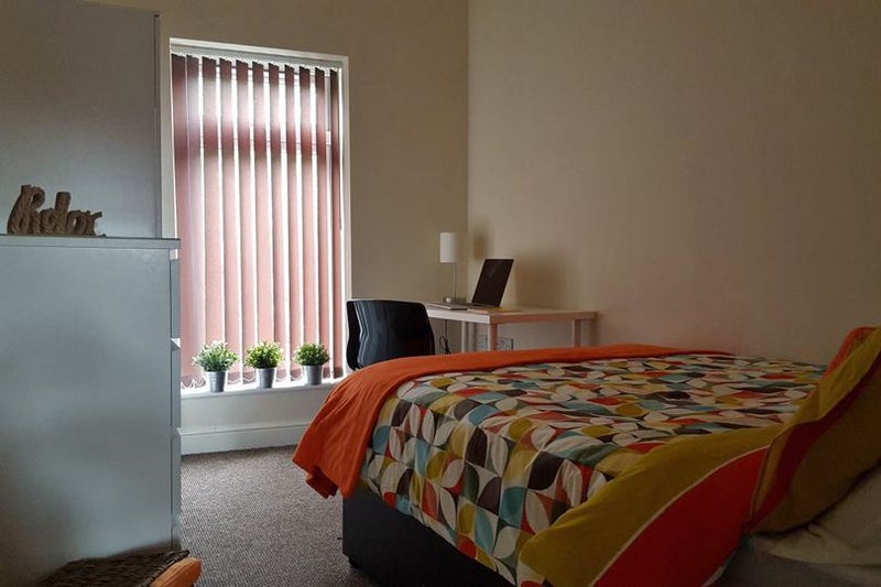 Each bedroom in the house is furnished with a double bed, wardrobe, chest of drawers, desk and chair, radiator, window with blinds, and a privacy lock for added security. The shared spaces include a large kitchen with modern appliances, a spacious lounge with comfy couches and a large screen TV, a utility room with a washing machine, and 3 well-maintained shower rooms. The overall atmosphere of the flat is cozy, inviting, and conducive to both studying and socializing.