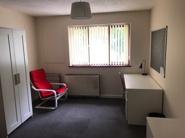 The available study bedrooms are furnished to provide a comfortable and conducive environment for academic pursuits. Shared spaces like the bathrooms and kitchen areas are well-maintained and equipped with essential amenities for daily living. The overall atmosphere of the flat is conducive to studying and relaxation, ensuring a harmonious living experience for all residents. Practicality and comfort are prioritized in the furnishings and layout of the living spaces, creating a welcoming home for students.