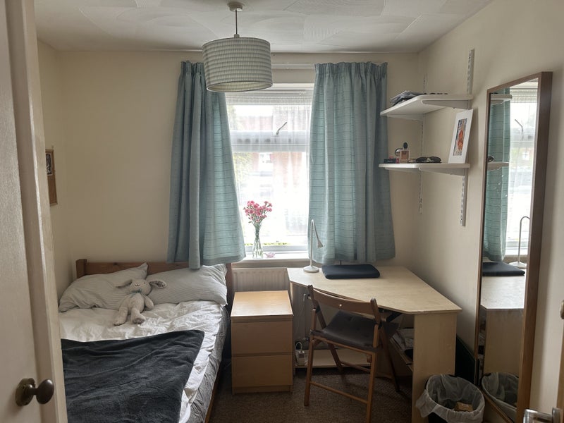 The available room in this house is well-furnished and offers a comfortable living space for the new housemate. The shared areas, including the living room and kitchen, are designed for practicality and relaxation. The atmosphere of the flat is welcoming and conducive to social interactions among the flatmates. With a focus on comfort and functionality, this living space provides a cozy retreat for all residents to enjoy.