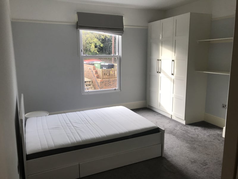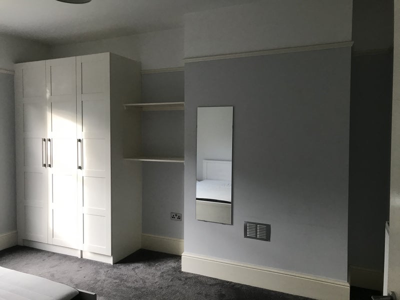 The available double room comes fully furnished with a large fitted wardrobe, a comfortable double bed with storage underneath, and a bedside table. The overall atmosphere of the flat is cozy and inviting, perfect for relaxing after a long day. The emphasis on cleanliness is evident, making it a comfortable and practical living space for residents to enjoy.