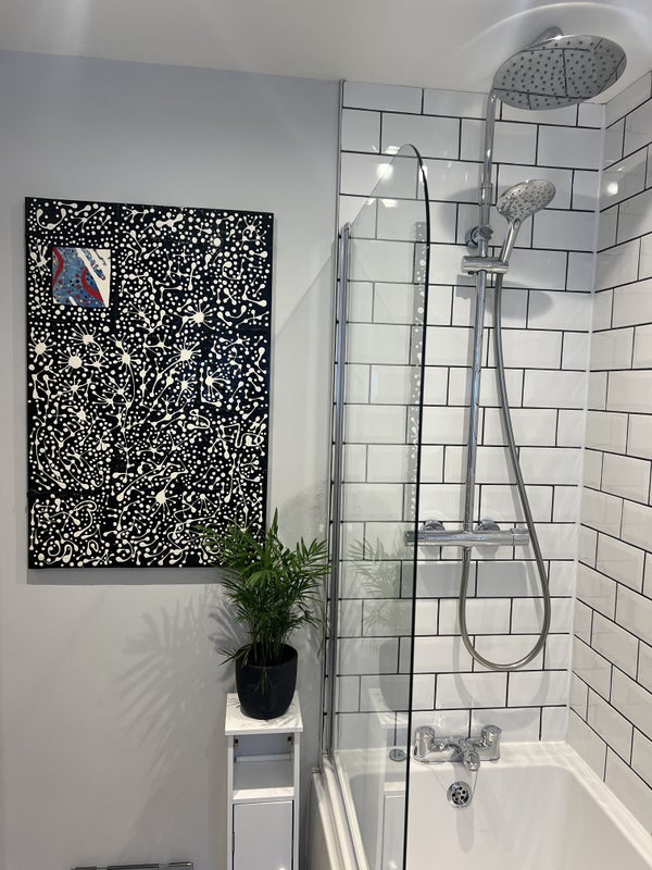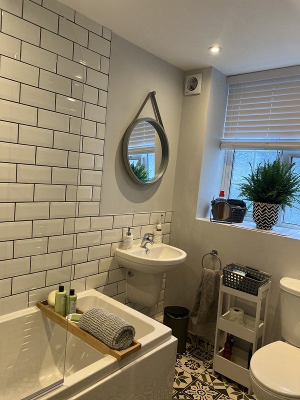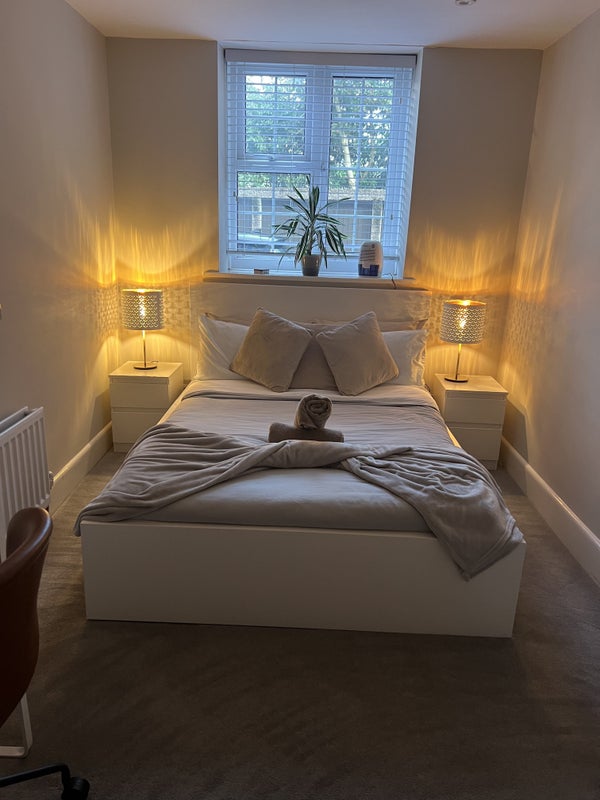 The room in this flat exudes comfort and practicality, providing residents with a place to work or study within the room. The shared living spaces boast amenities such as Sky, wireless broadband, and Netflix in the living room. The kitchen features a breakfast bar, access to the garden, and modern appliances including a large American-style fridge freezer, dishwasher, washing machine, and cooker/oven. The newly renovated bathroom suite offers a bath and overhead rainfall shower, ensuring a luxurious experience for residents.