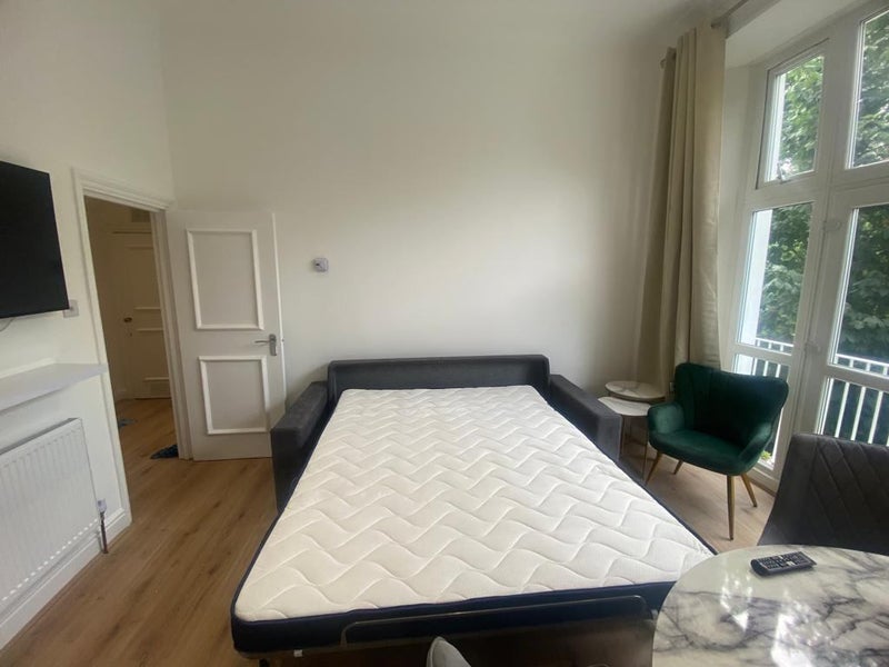 This modern apartment in West Kensington is situated in a Victorian conversion, offering a blend of modern amenities and classic charm. The property features high ceilings in both the living room and bedroom, creating a spacious and airy feel. The apartment is practical and bright, with a lovely balcony overlooking a peaceful garden. Ample storage is provided with built-in closets in the bedroom and hallway, and the flat comes fully equipped with kitchenware, a vacuum cleaner, and an iron. The location is convenient, with Westfield, one of London's largest shopping centers, just across the road. Shepherd's Bush underground station (zone 2) is a mere 5-minute walk away, and Holland Park can be reached within 8 minutes on foot. The furniture and fittings are all new, adding a touch of modernity to the space. Additionally, the council tax fee is included in the rent, making for a hassle-free living experience.