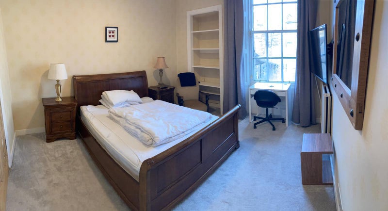 The available room in this flat is a spacious double room with modern furnishings, including a smart TV, desk and chair for studying or working, a walk-in wardrobe, and ample storage space. The room is designed for comfort and practicality, providing residents with a cozy and functional living space. The shared areas, such as the fully equipped kitchen and spacious living room, are perfect for socializing and relaxing. The flat has a welcoming atmosphere, making it a great place to call home for students in Edinburgh.