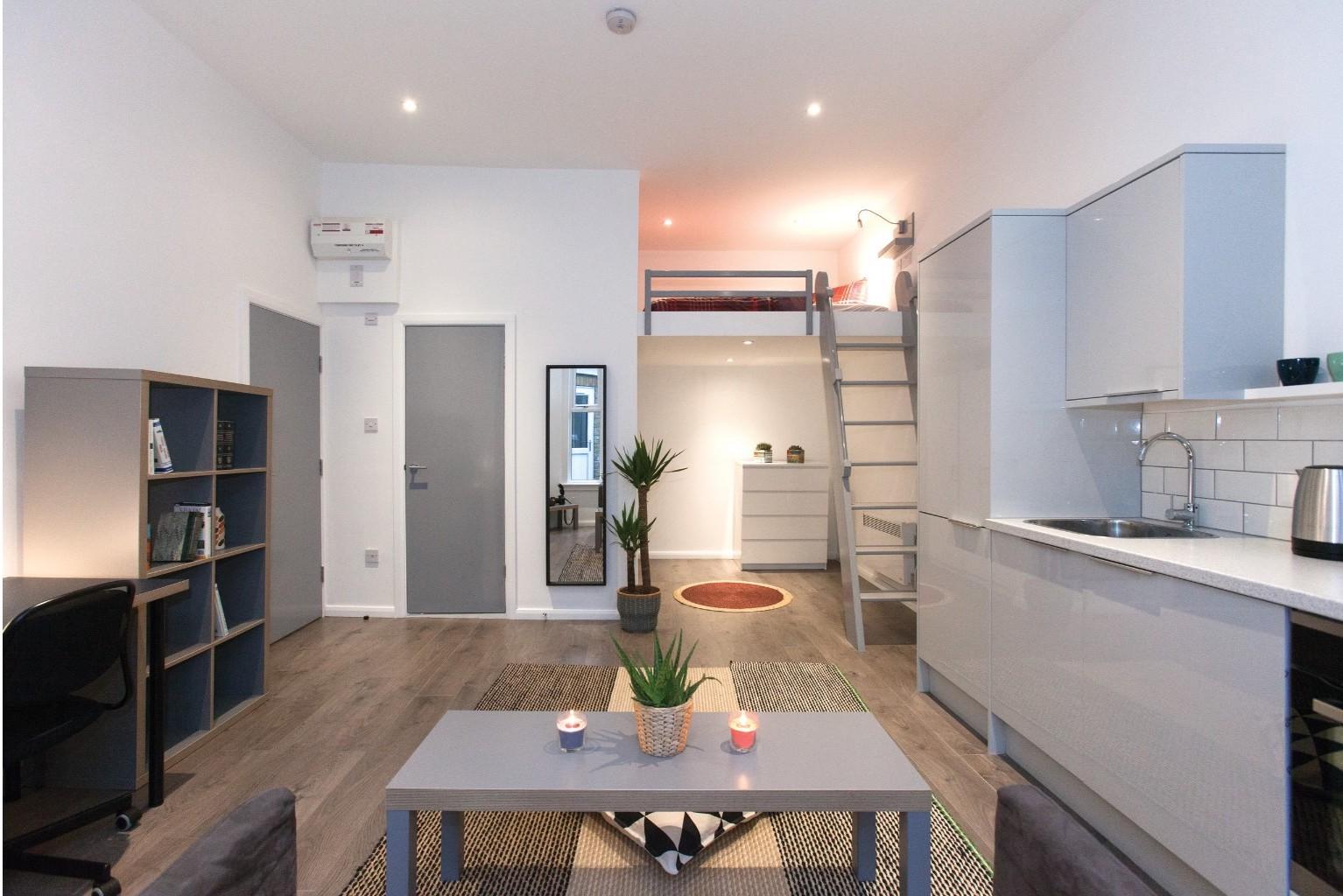 All rooms are fully furnished and finished to a very high specification. The premium studios offer private living with en-suite bathroom, kitchen, study area, storage space, free superfast broadband and come with single/double beds in mezzanine sleeping areas. They are between 22 and 26.5 sqm in size and fully refurbished. The classic studios offer private living with en-suite bathroom, kitchen, study area, storage space, free superfast Wi-Fi and come with single/double beds in mezzanine sleeping areas. They differ between 11.7 and 15.2 sqm in size and fully refurbished.
