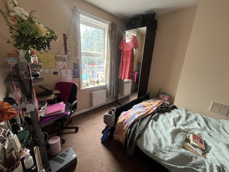 Located in Old Kent Road, this cozy double room is available for rent at £785pcm. The room comes fully furnished with a bed, wardrobe, desk, and chair, facing the main road. The living room is spacious, and the recently refurbished kitchen is equipped with modern amenities like a dishwasher, kettle, toaster, and microwave. The shared bathroom is well-maintained, and bills average around £100 per person. The deposit is £600+, with each flatmate responsible for separate bills to distribute financial risk evenly. The flatmates, Zula and Abby, are professionals in their mid-20s, with diverse interests and a preference for a neat and responsible female/non-binary flatmate.