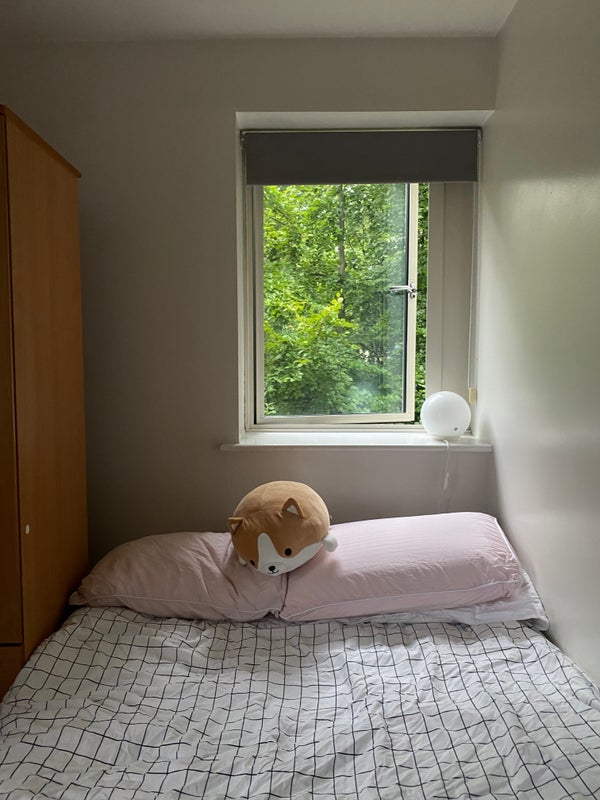 The available double bedroom is situated at the end of the corridor, providing privacy and a quiet atmosphere for residents. The furnishings are comfortable and practical, ensuring a cozy living space. The shared areas, including the bathroom and open plan kitchen/living room/dining room, are well-maintained and offer a welcoming environment for socializing or relaxing. The overall feel of the flat is homely and conducive to studying or unwinding after a long day.