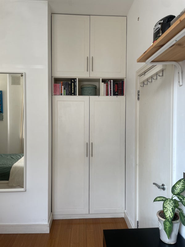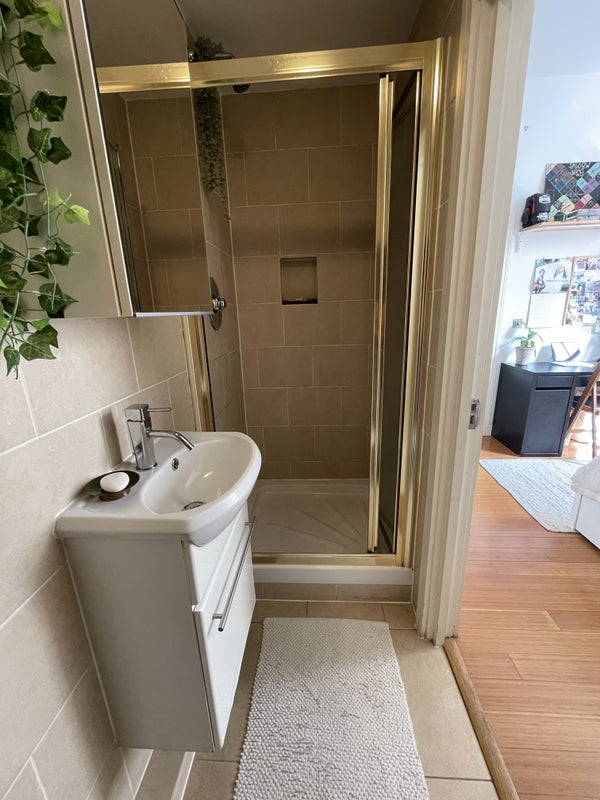 The room available for sublet is a private en-suite, ideal for a single occupant. The flatmates are a lovely couple in their mid-20s, offering a welcoming atmosphere. The living space features an open-plan layout with a well-equipped kitchen and a cozy living area. The room comes fully furnished, including a ceiling-height double wardrobe and under bed storage for practicality. Residents can also enjoy an outside area for relaxation.
