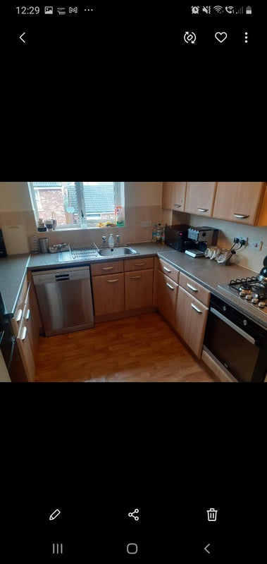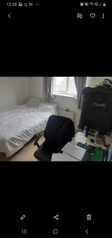 The available double bedroom in this Portishead flat is furnished with essential items for comfort and convenience. The room includes a bed, three sets of drawers, and a TV. The shared lounge and storage space offer additional areas for relaxation and organization. The overall atmosphere of the flat is peaceful, reflecting the landlord's preference for a calm living environment. Residents can enjoy the communal garden area and parking space, enhancing the practicality and comfort of the living space.