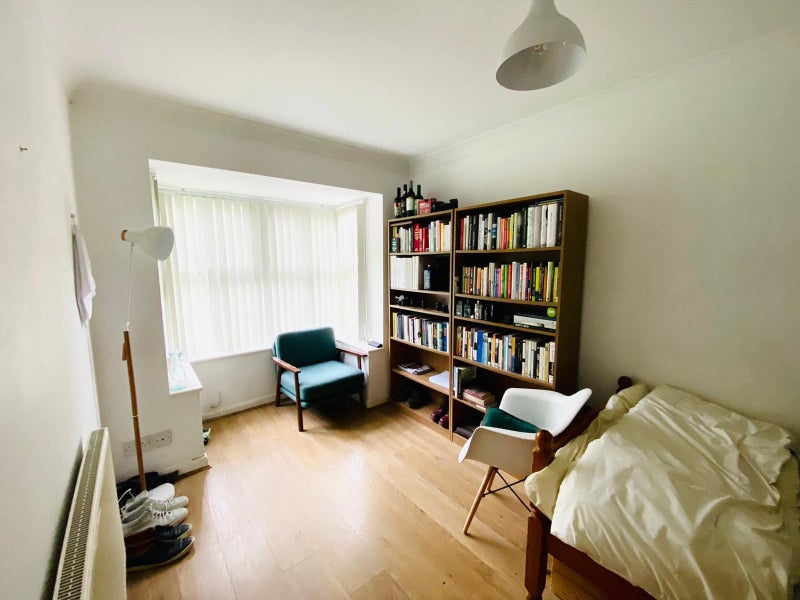 Located in a vibrant neighborhood, this three-bedroom house share offers a cozy double room for rent. The room is mostly furnished with essential amenities such as a bed, wardrobe, bookshelves, and a desk. The rent ranges between £650 - £700 per month, inclusive of all bills. The house is well-equipped with shared spaces including a downstairs toilet, an upstairs bath, a spacious kitchen and dining area, and a comfortable living room. Additionally, residents can enjoy a large back garden with a shed for storage and a front yard with a parking space. The house's convenient location provides easy access to amenities such as a nearby Sainsbury's, a 15-minute walk to the train station, and various cafes and pubs in the vicinity.