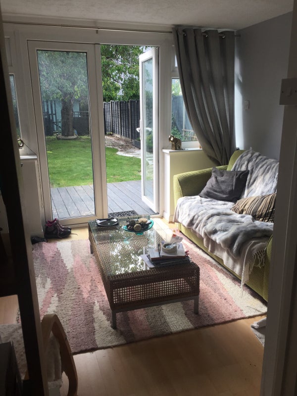 The available double room overlooks the serene garden at the back of the house, offering a peaceful retreat for relaxation. Furnished with a TV, double bed, side table, chest of drawers, and wardrobe, the room is designed for comfort and functionality. The shared spaces include a lounge area with a TV, a cozy 'snug' room with double French doors opening to the garden, a decked BBQ area, and a lawn. Additionally, there is a laundry area and a downstairs toilet/cloakroom for added convenience.