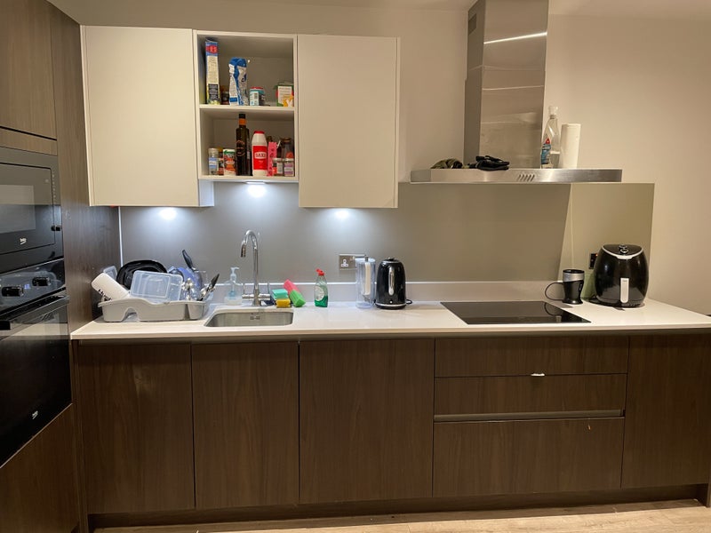 The available double room is tastefully furnished and comes with its own private ensuite, providing residents with a cozy and private living space. The apartment boasts shared spaces like the Club Room and communal working area, creating a welcoming atmosphere for socializing or working from home. Comfort and practicality are key features of this living space, ensuring residents can relax and unwind in a stylish and functional environment.