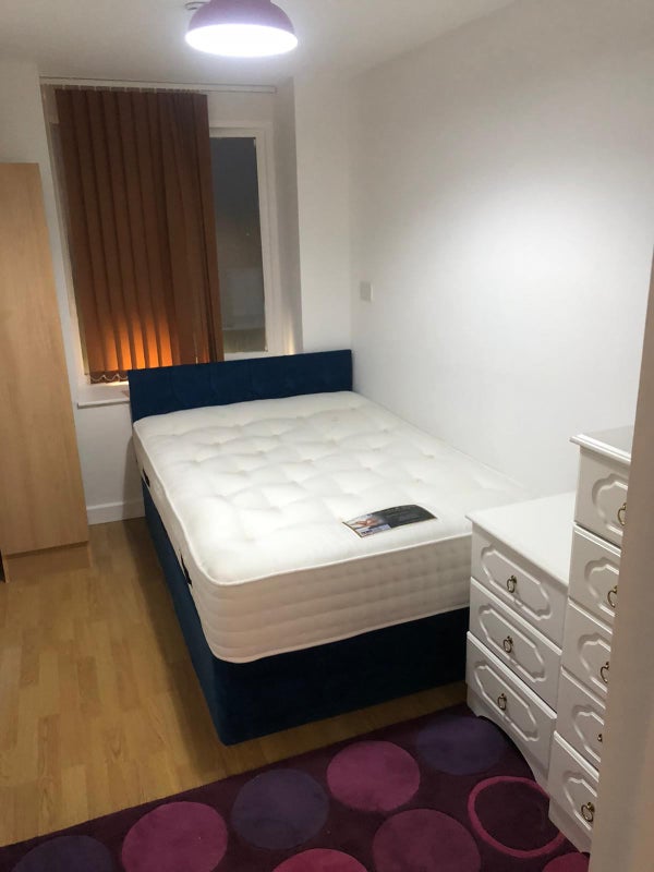 Located just a five-minute walk from Bradford City Centre, this clean, quiet, and highly secure accommodation offers a double bedroom with an ensuite bathroom for rent. The shared kitchen is well-maintained, with each resident having their own large cupboard. The building features on-site security, monitored CCTV cameras, weekly cleaners, laundry facilities, an intercom system, bike storage, additional storage units, and electronic fob locks for added security. Rent includes communal cleaning, repairs, and hot water, but excludes wifi, electricity, council tax, and TV License. Bradford University is within a ten to fifteen-minute walk from the property.
