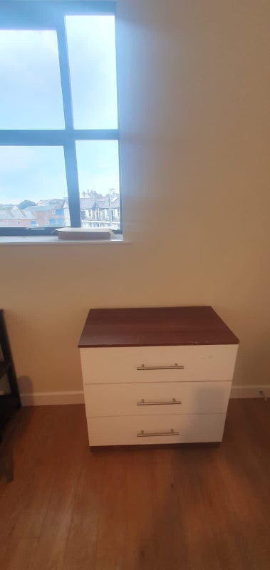 The En Suite Pod Unit available for rent is situated in a clean, quiet, and secure accommodation near Bradford City Centre. This neatly kept unit comes furnished with essential amenities such as a bed, drawers, desk, and chair. The communal areas are well-maintained, and residents have access to a shared kitchen that has been recently refurbished. Security measures include an on-site security contact available 24/7, monitored CCTV cameras, and weekly cleaning services provided by the building management company. Additional facilities like laundry services, bike storage, and secure storage units are also available for resident convenience. The rent includes communal cleaning, repairs, and hot water, but excludes wifi, electricity, council tax, and TV License.