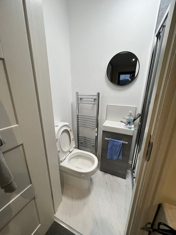The en suite room offers a cozy and practical living space, perfect for unwinding after a long day at work. The furnishings are modern and comfortable, creating a welcoming atmosphere for residents. The shared kitchen is well-equipped for cooking and socializing with flatmates. The overall feel of the flat is homely and inviting, ensuring a pleasant living experience for all occupants.
