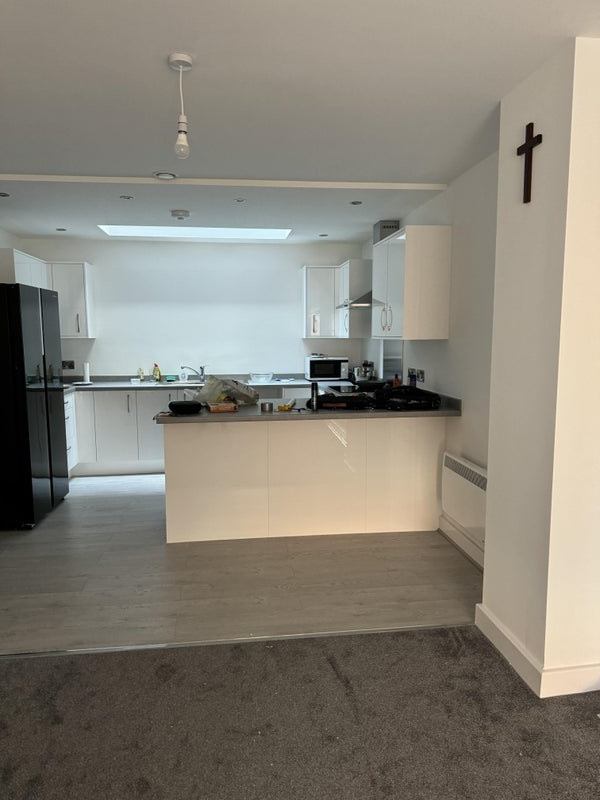 The en-suite master bedroom offers a cozy and practical living space for residents. The room is well-equipped with essential furnishings and storage options, ensuring comfort and convenience. The shared spaces, including the hall and kitchen, are maintained well and provide ample space for daily activities. The overall atmosphere of the flat is quiet and conducive to a peaceful living environment. Residents can enjoy the amenities such as a washing machine, dryer, and generous fridge and freezer space, making daily chores hassle-free.