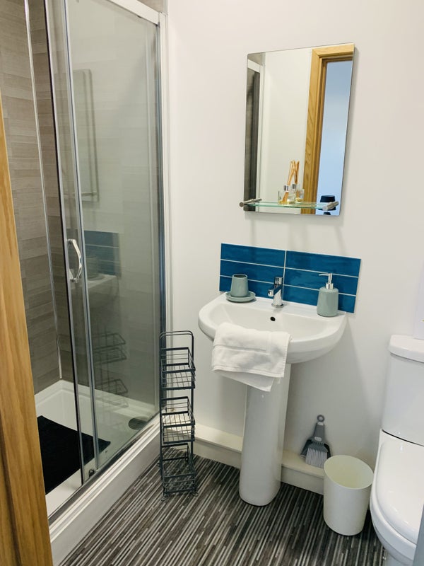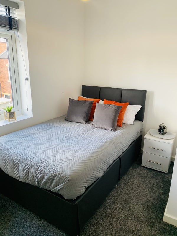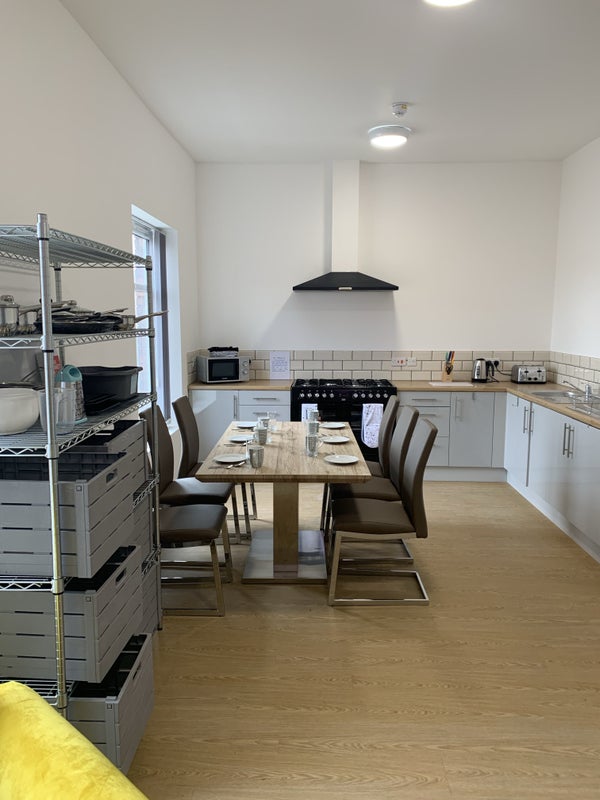 The beautiful bedrooms are furnished with superior quality double beds, all with ensuite bathrooms and high-quality mattresses. USB sockets are available for convenience. The communal kitchen area is stunning, with spacious kitchens comprehensively fitted-out with new appliances and luxurious lounge and snug areas with a Smart TV. Practical amenities include utility rooms with washers, tumble dryers, ironing boards, and irons. Central heating and new double glazed windows ensure comfort even in the coldest winter months.