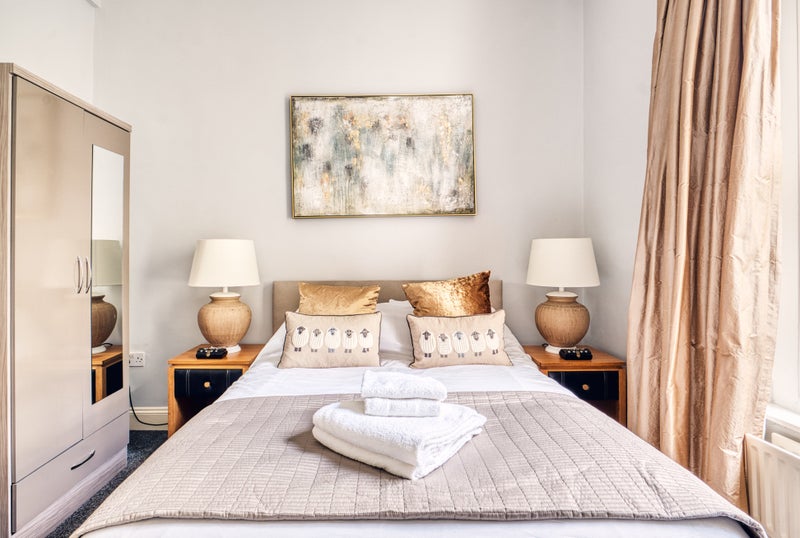 This entire flat in a gorgeous Georgian renovated building offers a picturesque view of Brunswick Square. Located just 4 minutes from Gloucester Quays and a 3-minute walk to the royal park, this property boasts a prime location. The double bedroom comes fully furnished with a comfortable double bed, pillows, duvet, blanket, bedside tables, iron/ironing board, and a hanging wardrobe. The separate kitchen is fully equipped with essential appliances like a washing machine, fridge, toaster, kettle, and coffee machine. The bathroom features a walk-in shower and a good-sized mirror, while the living room is tastefully decorated with an L-shaped sofa, TV, and a dining table with chairs. Situated on an exclusive private Garden Square, this first-floor flat shares a main entrance with three other flats.