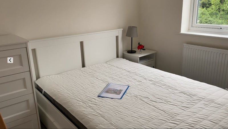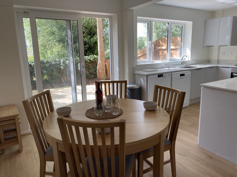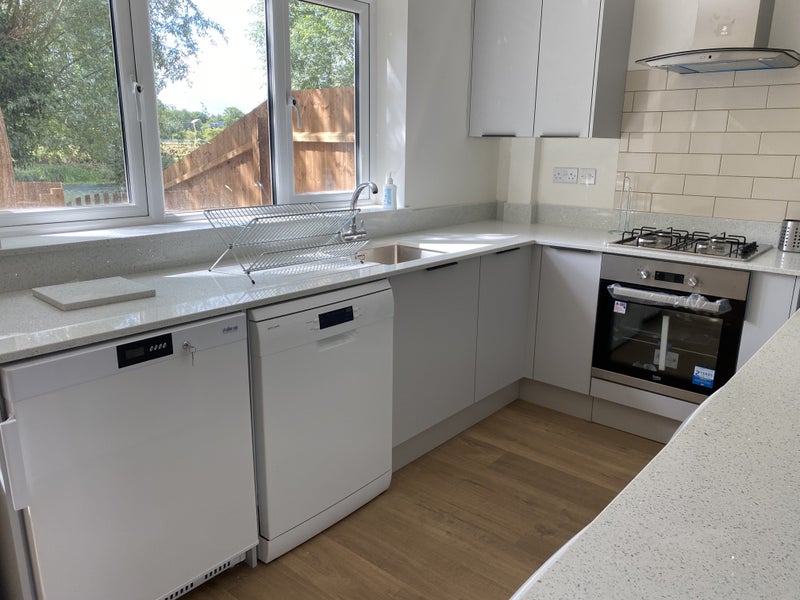 The available room, Bedroom 2 (£750), is a bright and spacious double room on the 1st floor, newly decorated and carpeted. It is suitable for a single person and has access to the shared bathroom just a few steps down the hallway. The house features a large living room with an L-shaped kitchen, stretching from the front to the back with French windows leading to a patio garden and the river towpath. The house boasts a modern and gleaming interior with wood laminate flooring.
