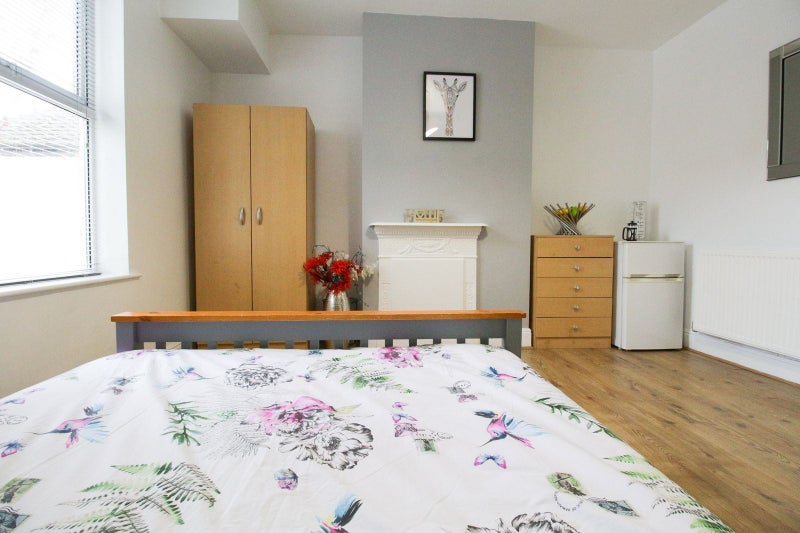 The spacious double room in this property comes fully furnished with a double bed, wardrobe, chest of drawers, bedside cabinet, and a private fridge freezer. The shared kitchen features a breakfast bar, creating a welcoming space for residents to cook and socialize. The overall atmosphere of the flat is comfortable and practical, with a focus on providing a cozy living environment for all tenants. The property is designed to offer a homely feel while ensuring functionality for everyday living.