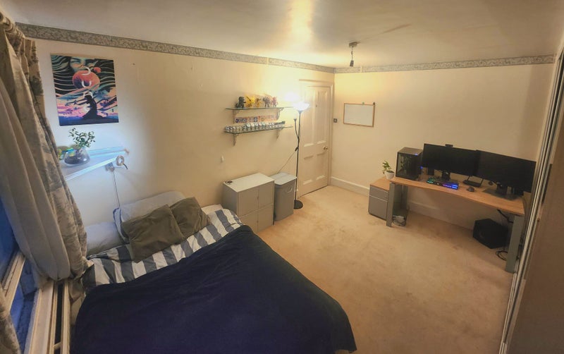 The available room in this flat is spacious and unfurnished, with the option of additional drawers and an office chair provided by the current flatmates. The shared spaces are kept clean and tidy, reflecting the flatmates' commitment to maintaining a comfortable living environment. The overall feel of the flat is cozy and welcoming, with a focus on practicality and comfort for all residents. The atmosphere is conducive to relaxation and productivity, making it an ideal space for both work and leisure activities.