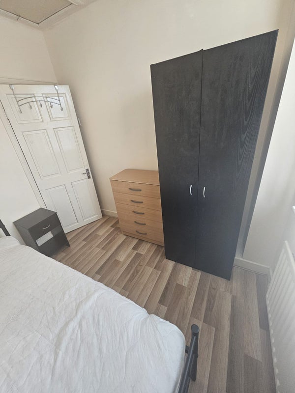 The available double room is furnished with essential amenities for a cozy stay. The communal lounge provides a relaxing space for socializing or unwinding after a long day. The overall atmosphere of the flat is welcoming and conducive to a harmonious living environment. Residents can enjoy the practicality and comfort of the shared spaces, making it a suitable choice for individuals looking for a hassle-free accommodation option.