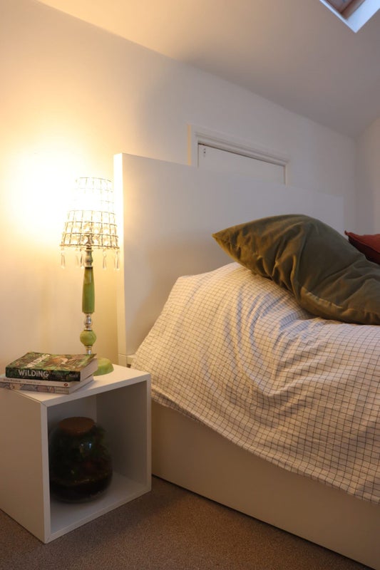 The available loft ensuite double bedroom is well-furnished and designed for comfort. The room features a modern ensuite bathroom with a large shower, providing residents with a private and convenient space. The comfortable king-size bed ensures a good night's sleep, and the work space with reliable WiFi is ideal for remote work or study. The overall atmosphere of the flat is cozy and inviting, with shared spaces that are well-maintained and conducive to relaxation.