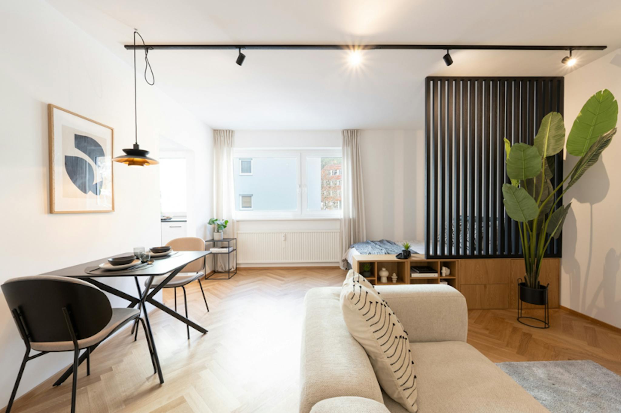 Boutique hotel vibes on 33 m2 – fully renovated to new-build standard in 2025. Oak herringbone floors, designer bathroom with rain shower, fully equipped kitchen with brand-name appliances, and stunning mountain views. Underground parking and storage included.