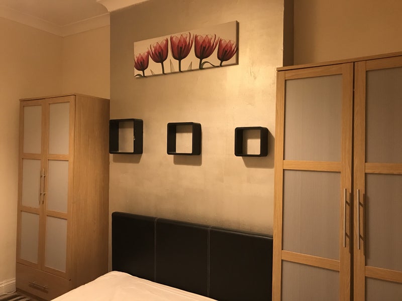 This stunning property offers a beautiful en-suite bedroom, a large room with a four-poster bed, and a newly completed summerhouse with luxury en-suite facilities. The house boasts a massive kitchen with top-notch appliances, a walk-in shower with stylish black and white tiles, and a beautifully landscaped garden. The property is ideal for short-term lets and welcomes working professionals in the area. Fiber optic internet with high-speed download and Sky TV are available for residents. The bedrooms are newly furnished with double beds and hand-painted grey furniture. The landlord is looking for friendly and tidy housemates to join the household.