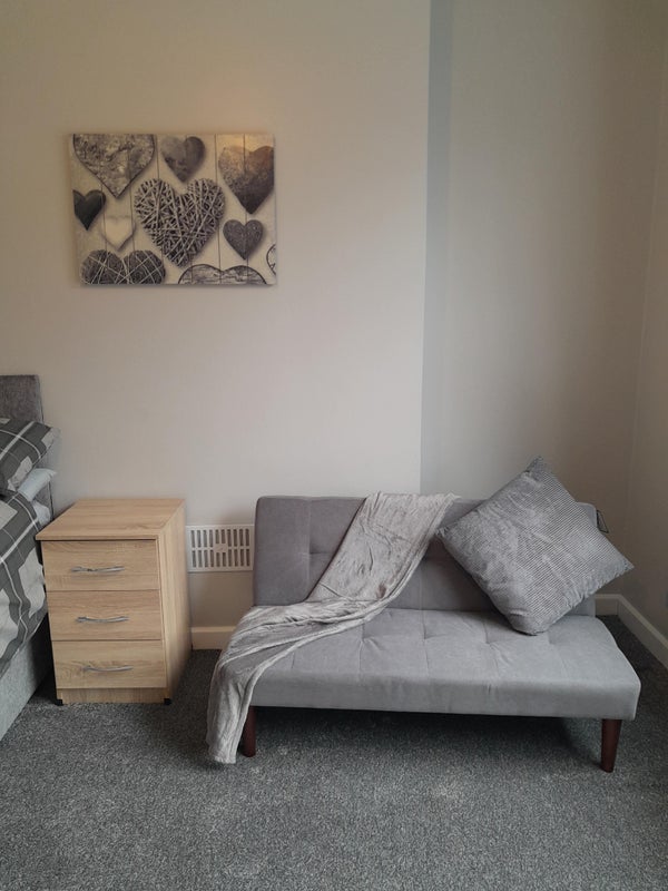 This recently decorated property offers a cozy and comfortable living space with a newly carpeted room featuring brand new furniture, including a bed, chair, and wardrobe. The room has been insulated and soundproofed for added comfort. Fast WiFi is included, and residents have access to shared spaces such as the kitchen, TV room with dining table, bathroom, shower room, and an enclosed rear garden. The property is conveniently located, just a 6-minute walk to Skylink and Long Eaton Town center, and a 23-minute walk to the train station. The property is owner-occupied four nights a week, with occasional visits from children and a small friendly dog, creating a quiet and smoke-free environment.