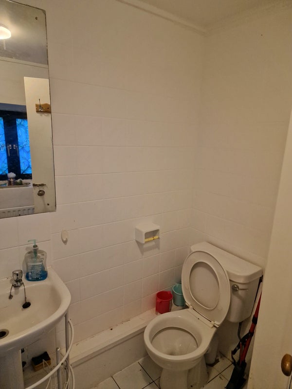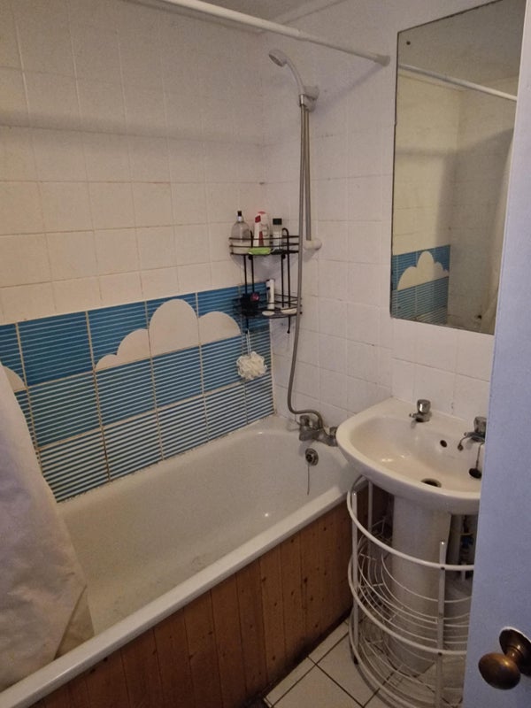 The available double bedroom is spacious and comfortable, providing a peaceful retreat for the resident. Furnished with a double king bed and ample storage space in the cupboard, the room also includes a convenient washbasin/sink for added convenience. The shared kitchen and bathroom on the ground floor are well-maintained and offer practical amenities for everyday living. The overall atmosphere of the flat is serene and conducive to relaxation after a long day.