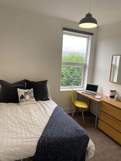 Located in the popular area of Shoreham Street, this well-presented 4-bedroom property offers a convenient 15-minute walk to the city center. The bay-fronted property boasts a spacious living room with a cozy corner sofa, an off-shot kitchen equipped with essential appliances such as a washing machine, fridge/freezer, microwave, and cooker. The open-plan layout on the ground floor, complete with a wall-mounted TV, creates a welcoming space perfect for relaxing or entertaining. Each bedroom is fully furnished with a bed, desk, chair, chest of drawers, and wardrobe. Rent is inclusive of bills such as gas, electric, water, TV license, and internet, making it a hassle-free living experience for tenants. Professionals may incur additional charges for council tax, if applicable.