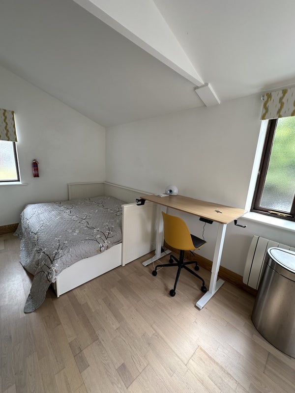 Welcome to our clean house located near Cranfield University. The property is ideal for working professionals seeking a quiet and convenient household. The house is immaculately decorated with 24-hour external floodlights, underfloor heating in the kitchen/dining room, a designated bike shed, and a very large back garden with ample space. Regular cleaning services for public areas are provided, and there are currently two en-suite rooms available for rent. The house promotes a quiet and clean environment with a no shoes past the front door policy, storage for outside shoes/coats, and strict rules against noisy housemates, parties, and unauthorized visitors. Additionally, a smart door entry system and surveillance ensure security and safety for all residents.