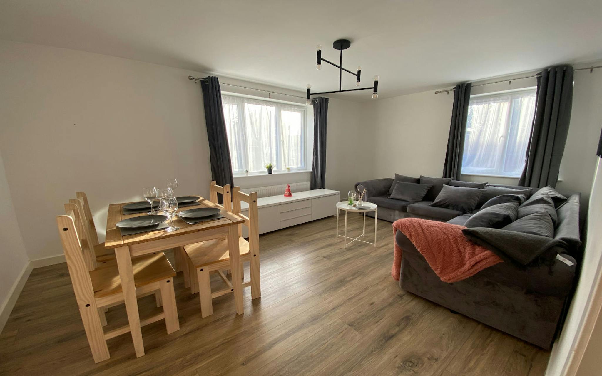 The flat comes fully furnished with everything you need to move straight in without having to do anything but bring your belongings for your stay. All furniture is brand new as of February 2024, and includes 2 new double beds with brand new mattresses (linen provided if required), sofa, dining table and 4 chairs, Smart TV, unlimited Wi-Fi, all crockery and cutlery for the kitchen, saucepans, chopping boards, knives, kettle, toaster, hair dryer, fridge, washing machine -everything you need for a comfortable stay.