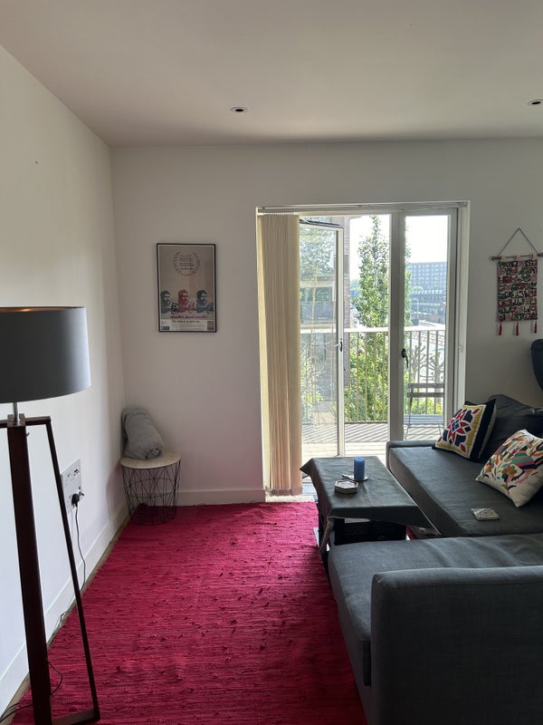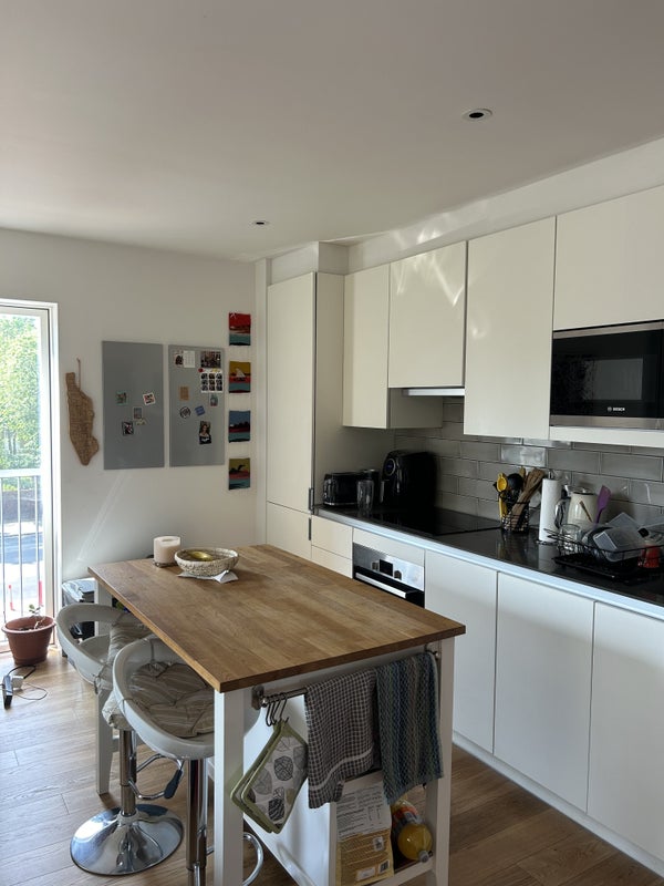 This spacious 2-bedroom 2-bathroom flat in East London offers modern living with a fully-equipped kitchen and a balcony for relaxation. Situated in a vibrant neighborhood, residents have easy access to cafes, restaurants, supermarkets, and gyms. The flat is conveniently located just a 5-minute walk from the tube/underground and a pleasant 15-minute stroll to the Thames. With one flatmate moving out, there is an opportunity for a new resident to take over her part of the lease, starting soon.