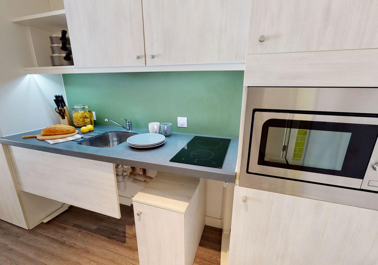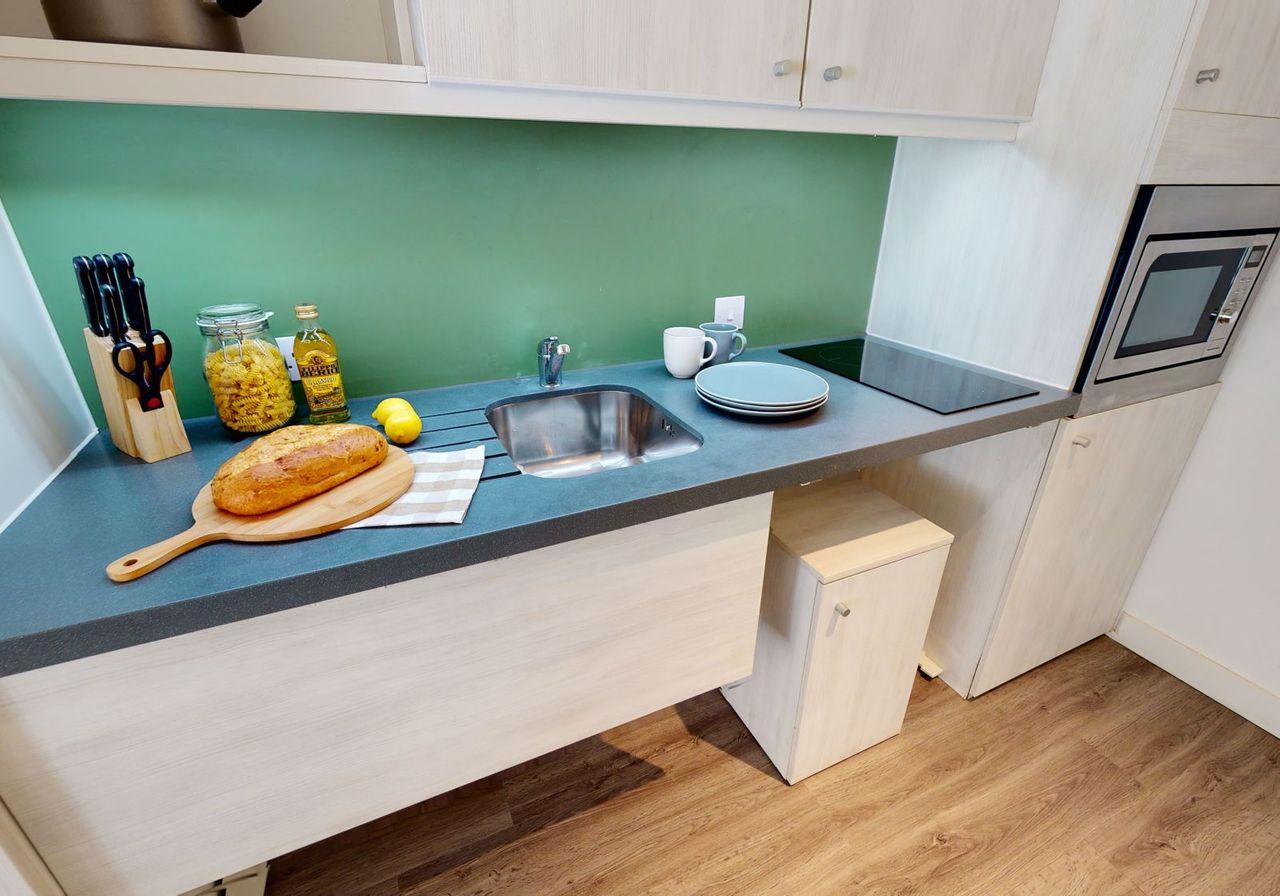 At iQ Aldgate, you’re just three minutes on foot from Central House at the London Metropolitan University, and eight minutes’ walk from Barts and the London School of Medicine and Dentistry. To reach the rest of the capital’s campuses, walk one minute to your closest bus stop, or five minutes to Aldgate East tube station. On weekdays, roll out of your double bed, grab your books from your bedroom desk, then stop at Exmouth Coffee Company for an artisan espresso on your way to class. At the end of the day, come home to your fully furnished studio. Stop for a chat with your friends on the reception’s comfy sofas, then head upstairs to get dressed for a session in the gym. Rinse off with a quick shower in your private ensuite, and wander through to the kitchenette for something to eat, before finishing your assignments in the dedicated study room.