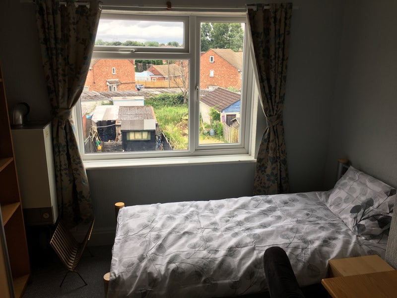 Located in a quiet cul-de-sac, this lovely spacious double room is perfect for students or contract workers. The house features a large kitchen with all necessary utensils, a dining area with a cozy log burning stove, gas central heating, and a separate utility room with laundry facilities. The well-maintained garden includes a large decking area with comfortable furniture for relaxation. The room itself is secure with its own keys, equipped with a flat-screen TV, kettle, unlimited internet access, desk, chair, built-in shelving, large wardrobe, and brand new bedding. The property is within walking distance to a shopping area with various amenities, Henley College, Ricoh Arena, AT7 sports center, and convenient bus routes to the city center and Coventry University.