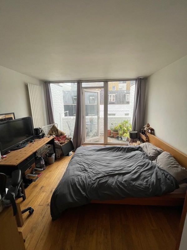 The available room in this mews house is generously sized and comes furnished with a queen-size bed for a cozy night's sleep. The private balcony offers a peaceful outdoor space to relax and unwind. The overall atmosphere of the flat is welcoming and conducive to socializing, with shared spaces designed for comfort and practicality.
