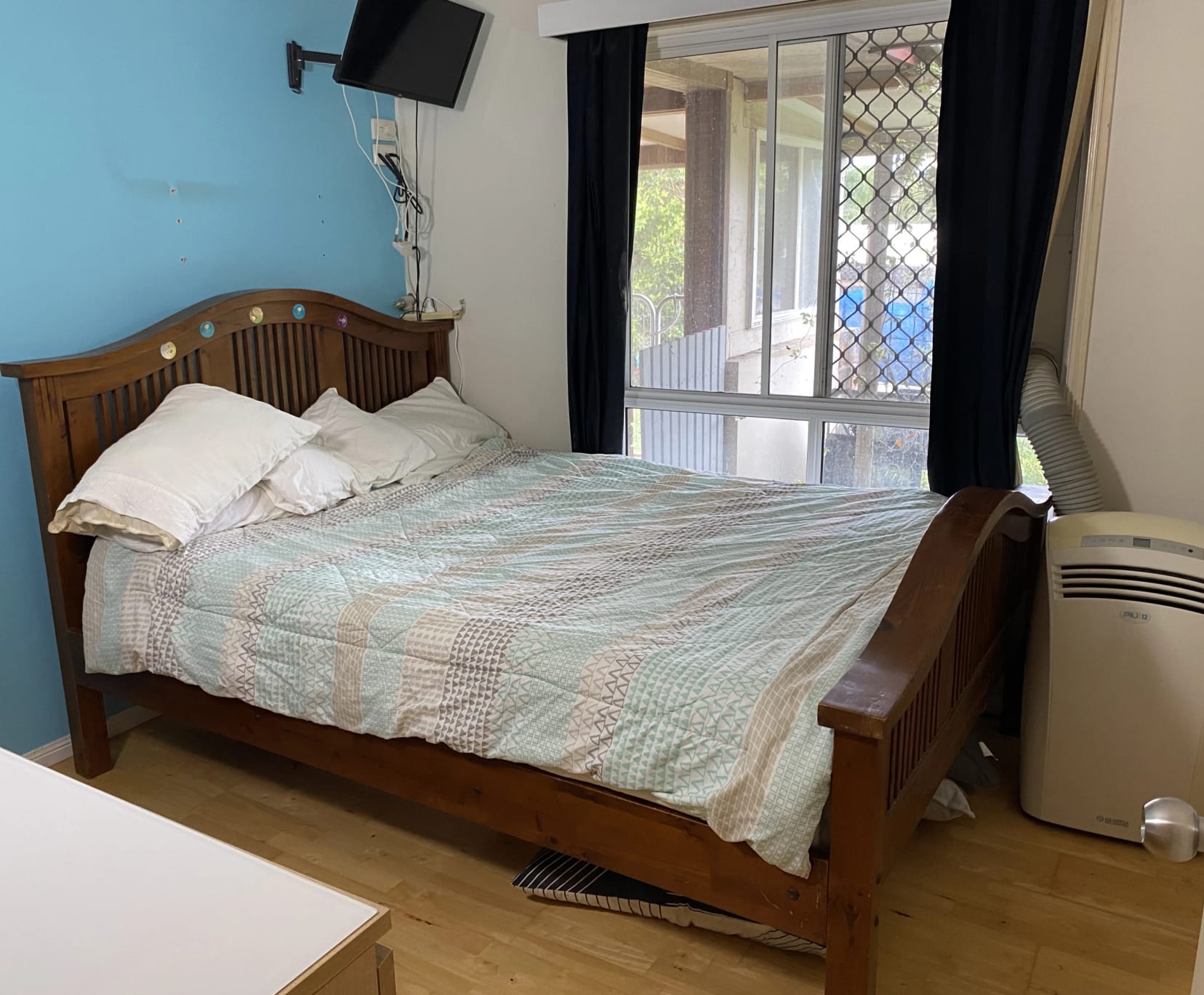 Your room is furnished with mirror, queen size bed, small tv, drawers and closet, portable air conditioner and key Locked. All items can be removed if you have your own bedding etc . Two very big sheds on property for storage if required.