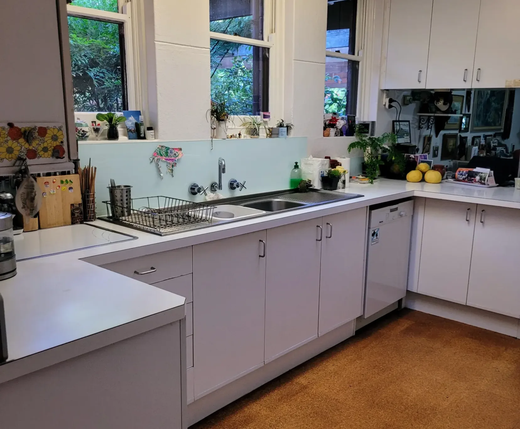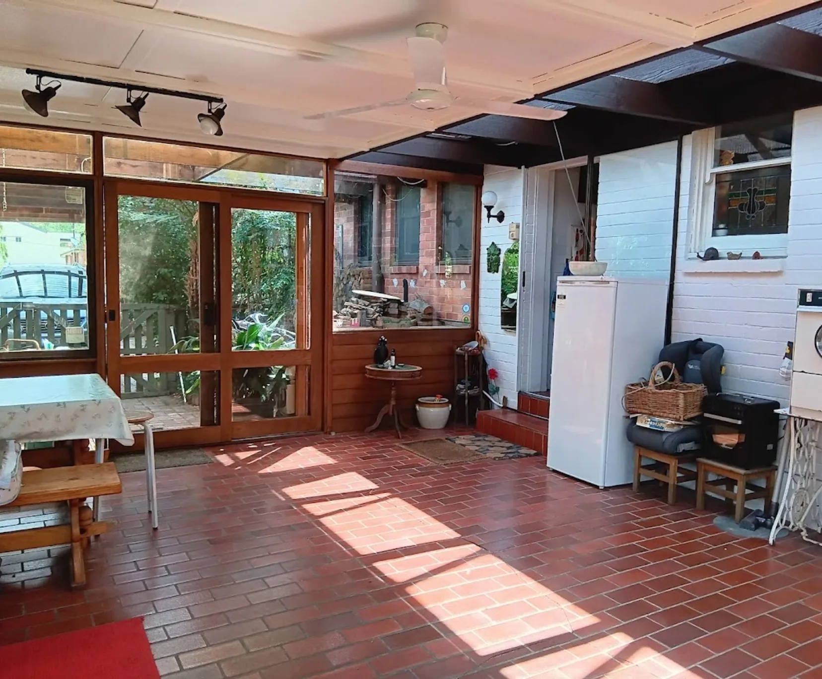 Residents and friends have access to a large sunroom with table and benches and the garden.