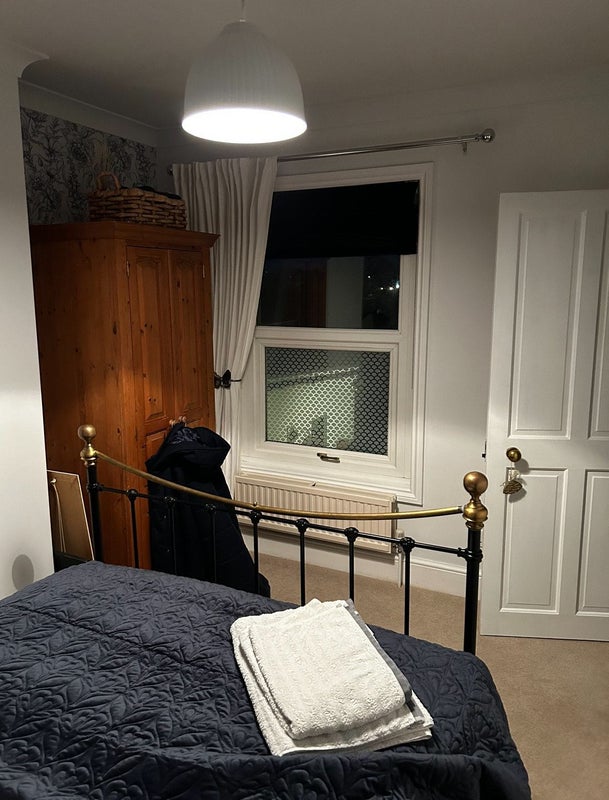 The available room in this cottage is cozy and inviting, with furnishings that create a comfortable living environment. Residents are not expected to stay confined to their rooms, as the shared spaces are designed for socializing and relaxation. The overall feel of the flat is warm and inviting, making it a perfect place to unwind after a long day.