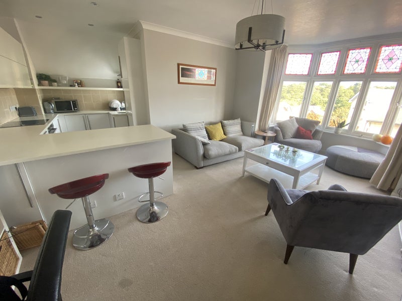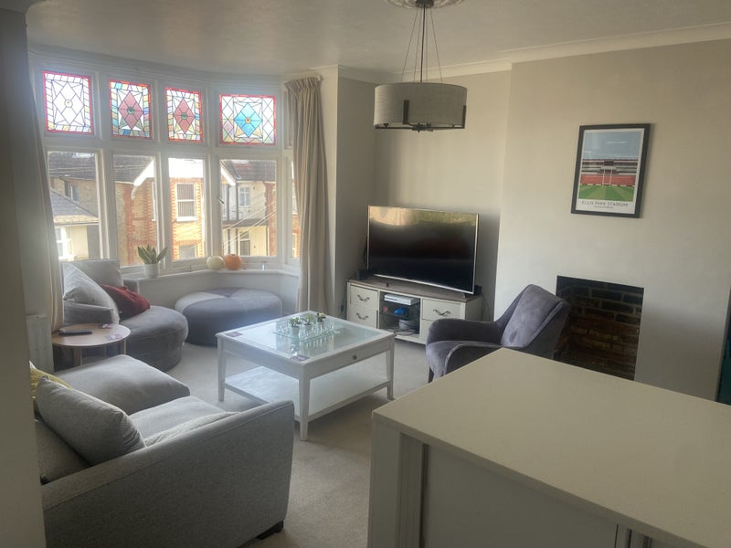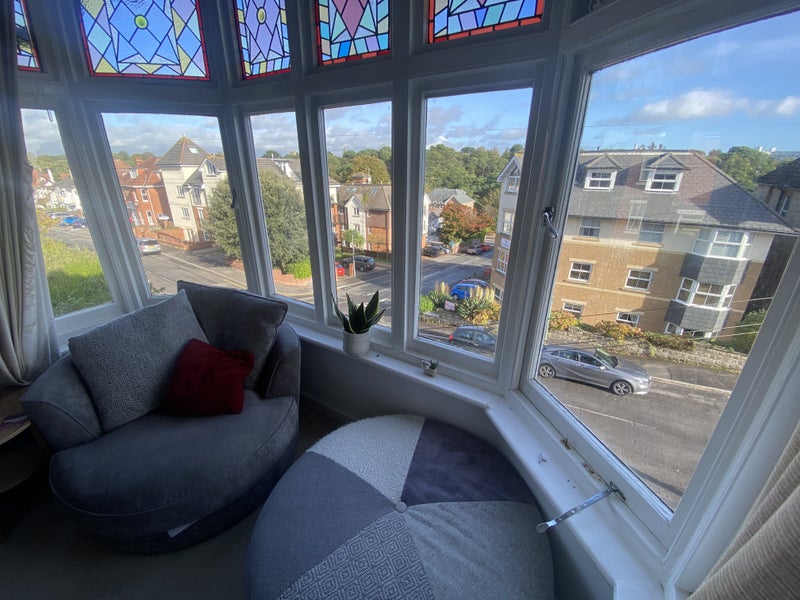 Located in Alum Chine, this sea view flat offers a large double room for rent. The shared flat accommodates one other friendly female flatmate who has a well-trained dog. The room comes fully furnished with a high-quality super king bed, TV, and desk. The minimum stay is 4 months, and the room is currently available for rent.