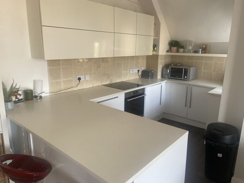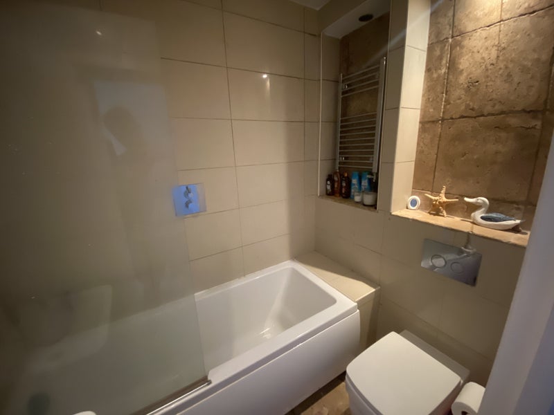 The available double room in this sea view flat exudes comfort and style. The furnishings are of high quality, including a super king bed for a restful night's sleep. The room also features a TV and desk for convenience. The shared spaces in the flat are well-maintained and create a cozy atmosphere for the residents to relax and unwind.