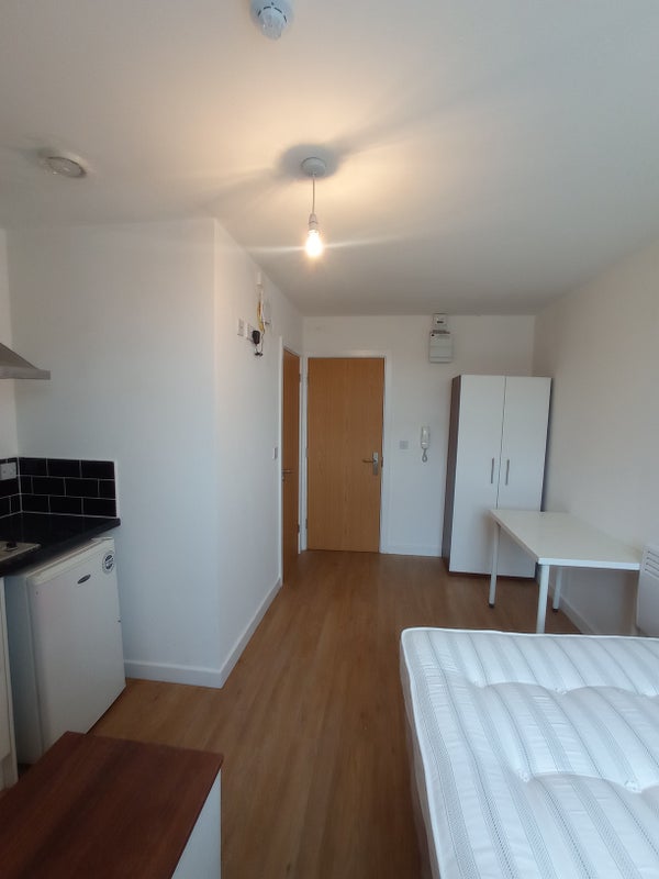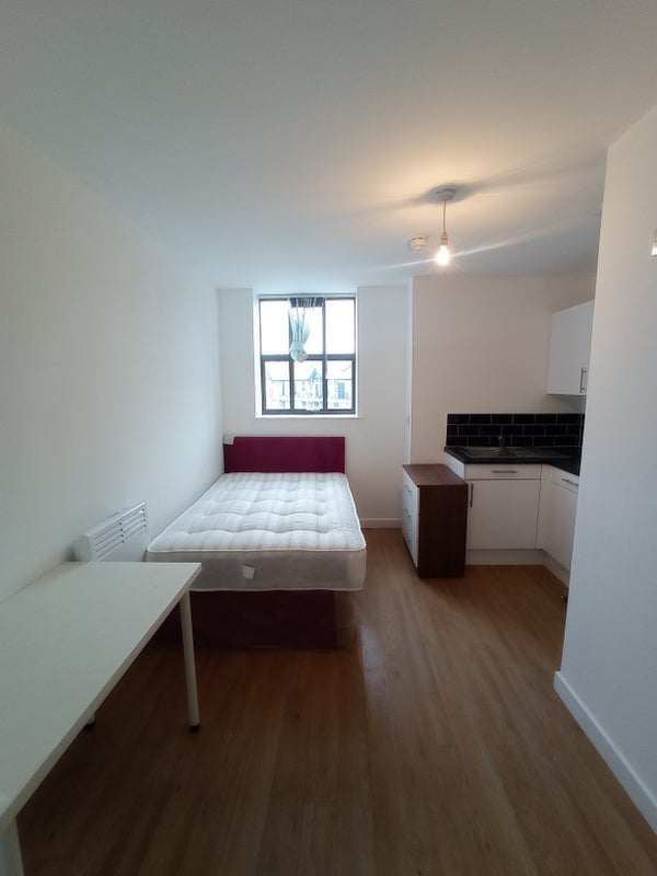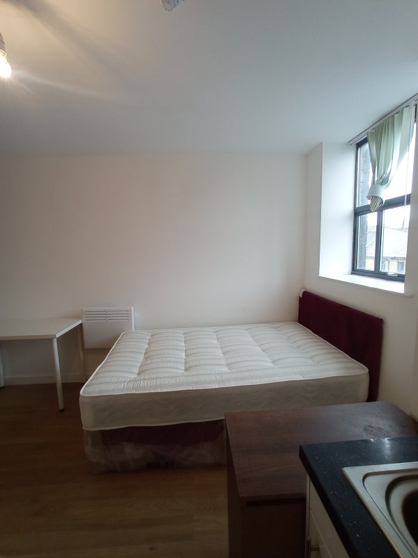 Located near Bradford City Centre, this studio unit in a clean, quiet, and secure accommodation is available for rent. The unit is furnished with a bed, chest of drawers, table, built-in kitchen, and ensuite. The property offers on-site security, monitored CCTV cameras, weekly cleaners for communal areas, laundry facilities with cashless machines, secure bike storage, additional storage units, and electronic fob locks for added security. Rent includes communal cleaning, repairs, and hot water, but excludes wifi, electricity, council tax, and TV License. Local facilities such as Bradford University, Bradford Interchange, and Bradford Forster Square are within walking distance.