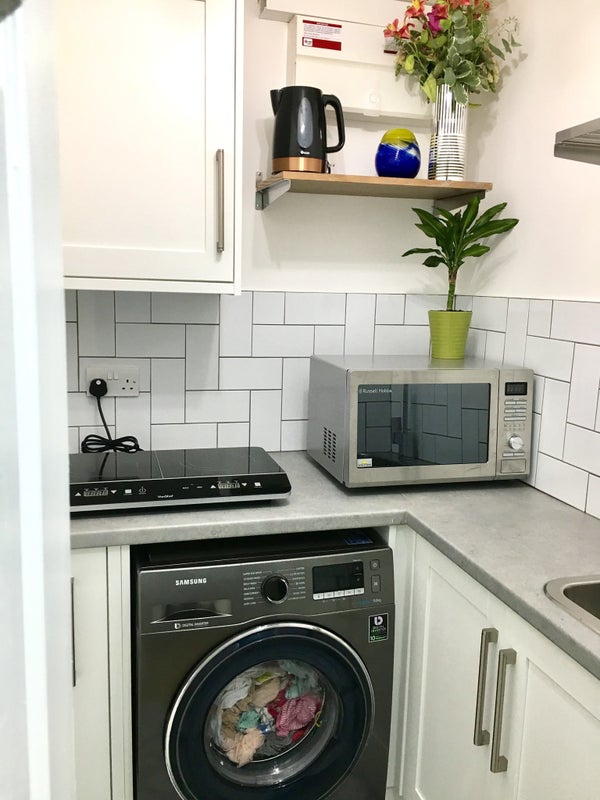 The studio exudes a comfortable and practical atmosphere, perfect for a professional seeking a peaceful living environment. The room is furnished with essential amenities for daily living, ensuring a cozy and functional living space. Shared areas are well-maintained and contribute to a harmonious living experience. The overall feel of the flat is welcoming and conducive to relaxation after a long day at work.