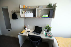 Upgrade your student experience with this Silver En-Suite in Belfast, offering extra space and comfort in a stylish setting. The room includes a private bathroom, larger floor area, a comfortable bed, study desk, and generous storage options. You’ll share a modern kitchen and lounge with your flatmates, making it easy to balance privacy and social living. Ideally located near universities, shops, and transport links, it’s perfect for students seeking both convenience and a bit more room to relax.