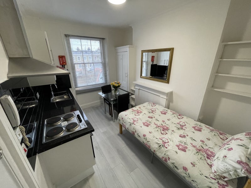 Located in a prime area ideal for students attending prestigious institutions like Imperial College, RCA, RCM, and UAL, this property offers flexible contracts ranging from 9-12 months. Most utility bills are included, ensuring a hassle-free living experience. The furnished single bedsit features a private kitchen with essential appliances, wooden flooring, and a garden-facing view. Shared amenities include a communal bathroom, washing machine, free Wi-Fi, communal garden, caretaker services, and 24-hour CCTV security. The property's proximity to key locations like Imperial College, Royal College of Art, Battersea Park, and various tube stations makes it a convenient choice for students.
