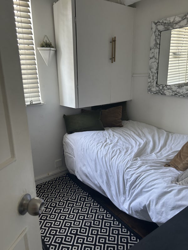 This small single room is ideal for a student or a working professional who commutes to London during the week. The property is shared with the host's daughter, aged 22, and niece, aged 30. There is an option to contribute to the food shop as the household prepares a family meal every evening. Please note that only non-smokers are allowed in the property. Additionally, there is a friendly but elderly family cat who prefers not to be petted.